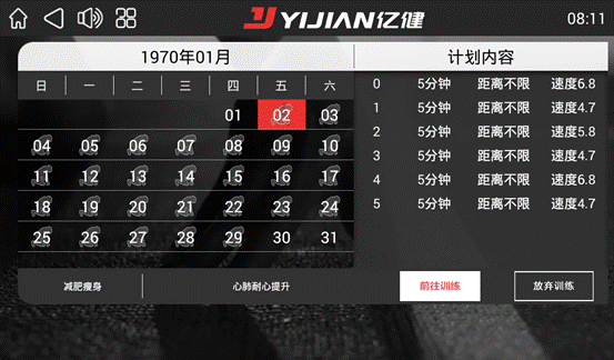 运动计划是根据客户的主要需求制定出几个运动计划,方便客户对不同跑步的模式的需求。